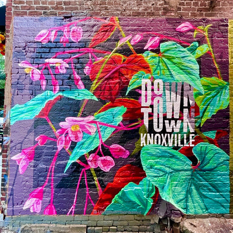 Hardy begonias are up for the latest Downtown Knoxville seasonal mural! ✨ Their late-season arrival brings a refreshing twist to the fall palette with vibrant pinks and electric greens that mingle beautifully with the classic yellows and oranges of autumn. A little unexpected, but perfectly timed to keep the season feeling alive and colorful. These cheerful blooms are proof that fall still has surprises waiting in the garden.